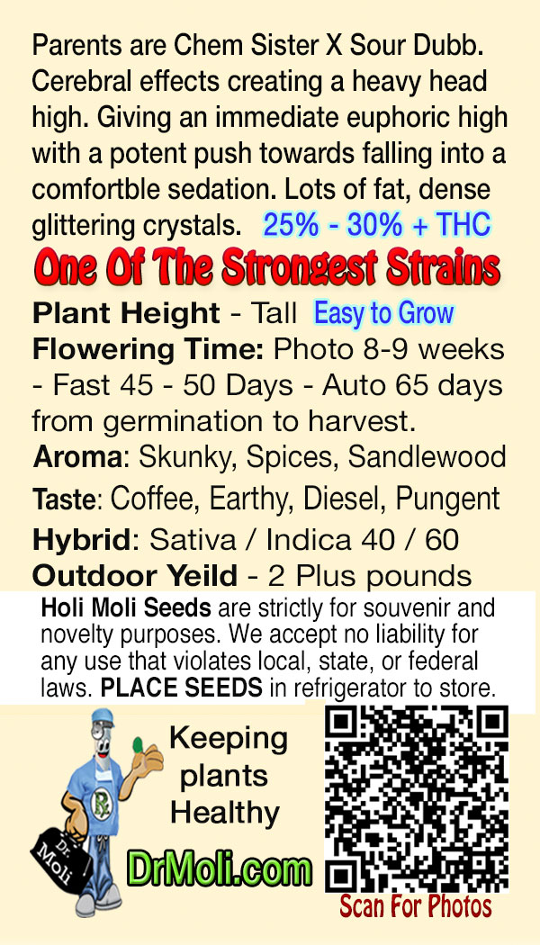 HoliMoli Seedbank provides great value, fresh high-quality marijuana seeds. We have the best high THC strains, Landrace strains, feminized strains, fast strains, CBD or autoflower strains, Wheather you call them weed seeds, pot seeds or beans. We have what the seeds you're looking for And We Are Located in the USA. California & Oregon.